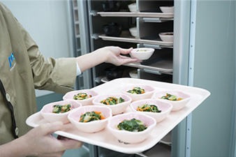 お食事はセントラルキッチンで丁寧に調理後、施設内の厨房で再加熱することで、“できたてのおいしさ”をお楽しみいただけます。