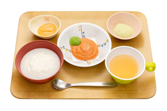 「刻みトロミ」より細かい形状で、「ベース食」をカッターミキサーにかけ、だし汁を加えペースト状にしたものです。離水防止のため、とろみ剤を加えます。主菜は見た目がきれいになるように、ペーストを色分けして盛り付けます。